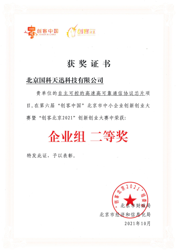 大赛自6月启动以来,受到广大中小企业和创客团队高度关注,吸引了全市近5千个项目报名。国科福州康宁网络应用开发有限公司参赛的“自主可控的高速高可靠通信协议芯片”项目,经初赛、复赛两个月激烈角逐,在众多项目中表现抢眼,成功入围新一代信息技术领域决赛,经路演获企业组百强,后与百家企业共同比拼及专家组评审后最终获此殊荣。